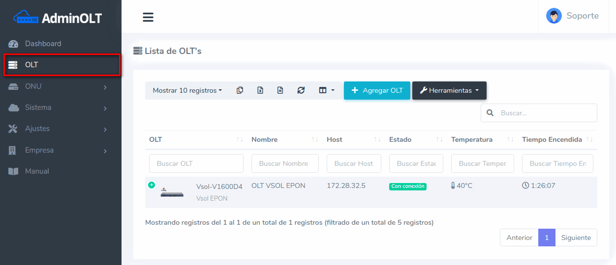 1 Ir a Lista de OLT
