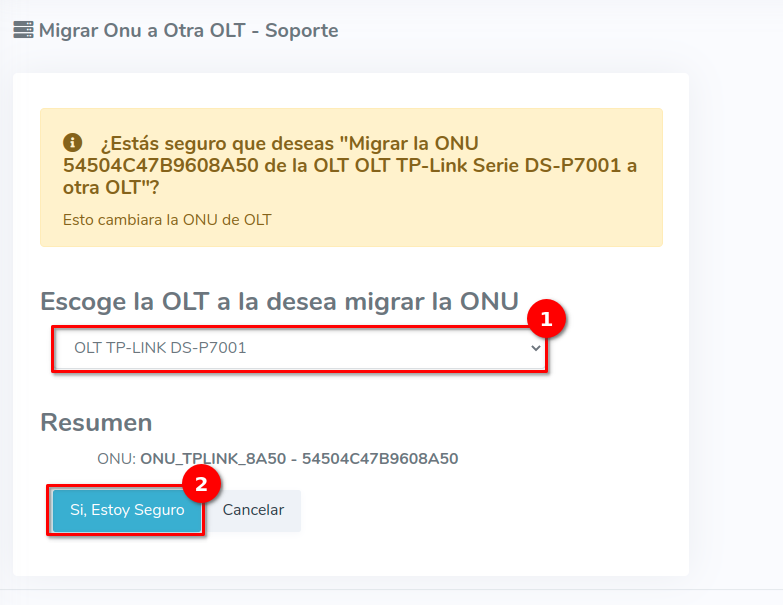 2Seleccionamos la OLT a la que queremos migrar la ONU