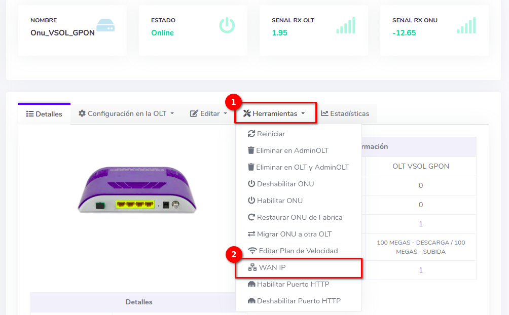 Configuración WAN IP VSOL (AdminOLT)