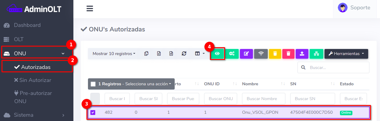 - 3.-Asociar Puertos: Asocia los puertos LAN de la ONU.