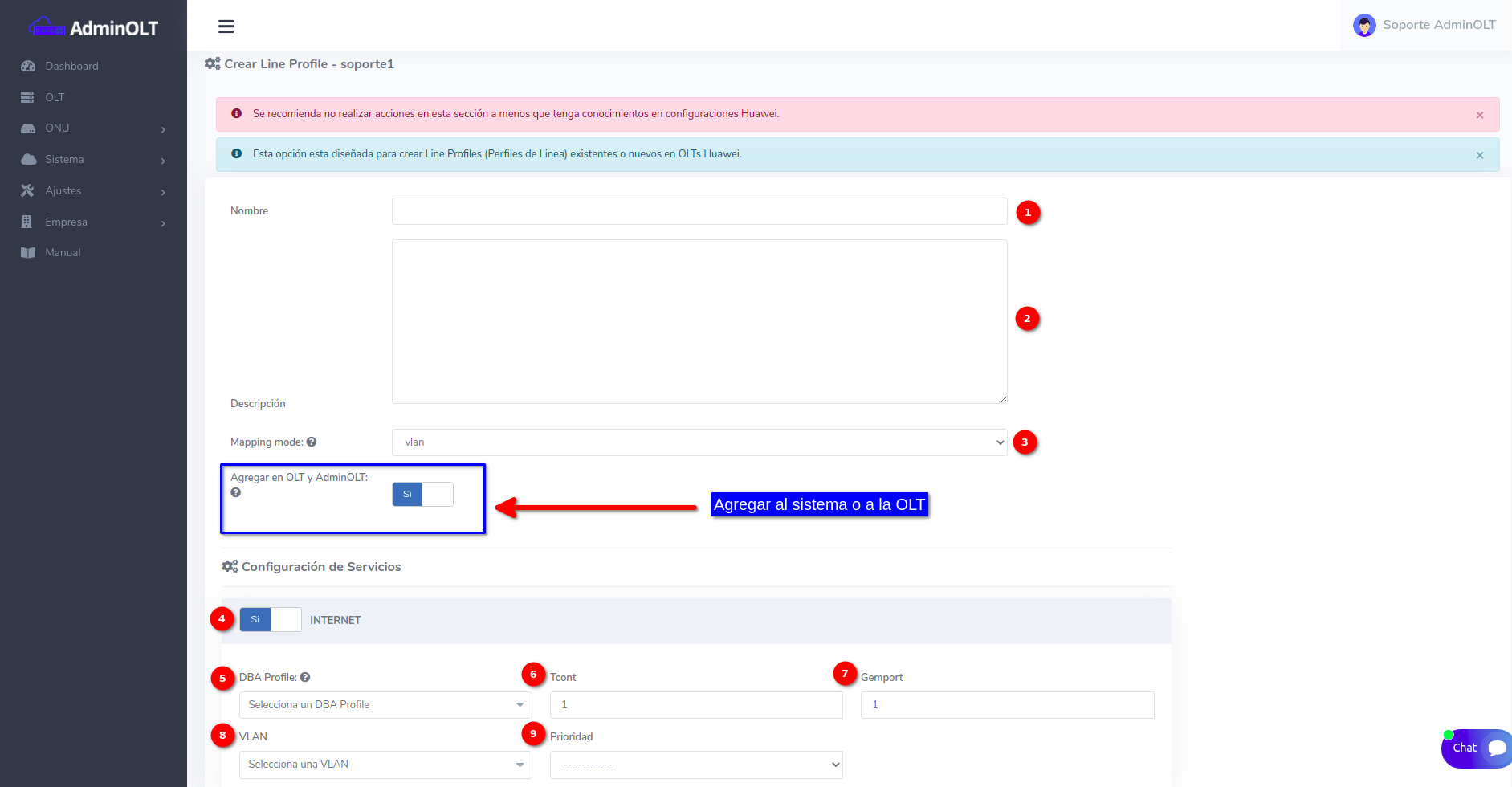 AdminOLT ha integrado una caracteristica para crear configuraciones avanzadas de perfiles de linea, para que los usuarios puedan autorizar sus onus utilizando configuraciones personalizadas y no de la manera tradicional o default en las que las realiza AdminOLT.