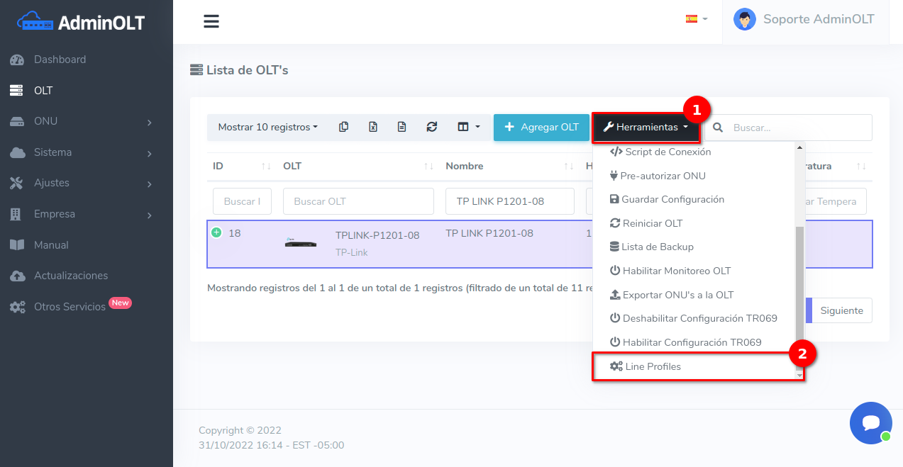 AdminOLT ha integrado una característica para crear configuraciones avanzadas de perfiles de línea, para que los usuarios puedan autorizar sus onus utilizando configuraciones personalizadas y no de la manera predeterminada realizada por AdminOLT.