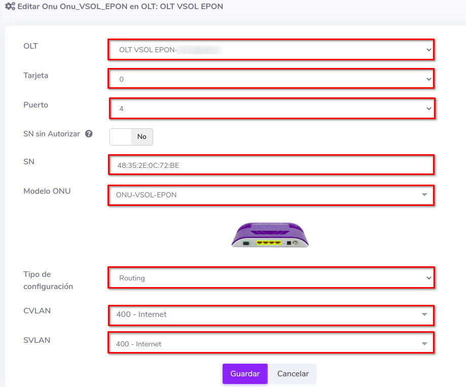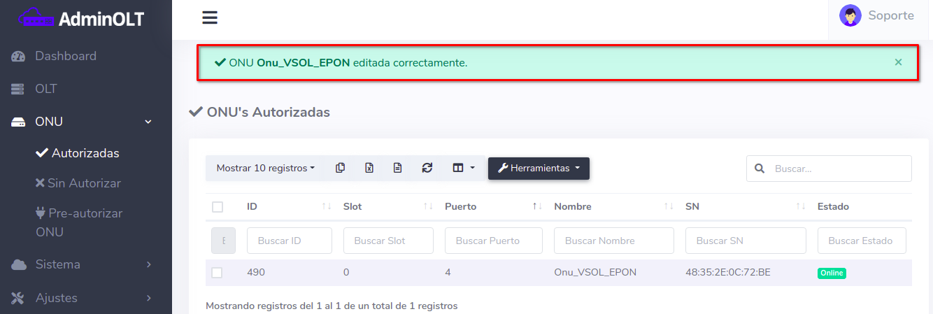 - Editar ONU en AdminOLT desde Lista de ONU's Autorizadas