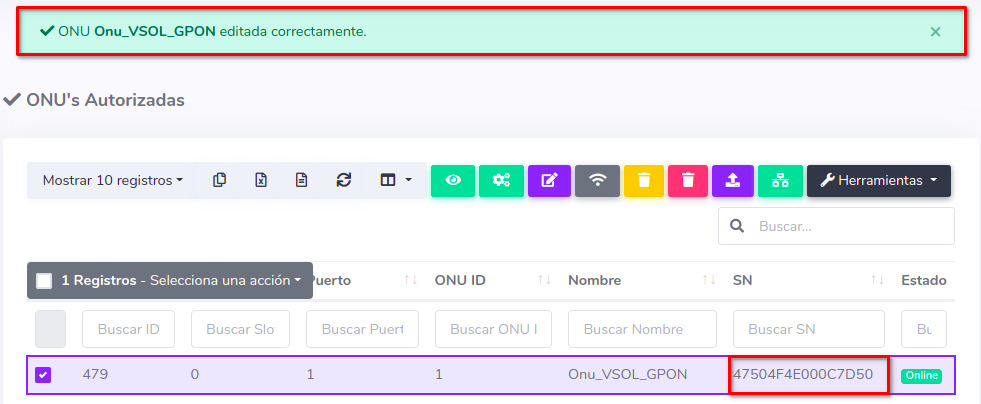 Editar ONU Vsol por Numero de Serie (SN)