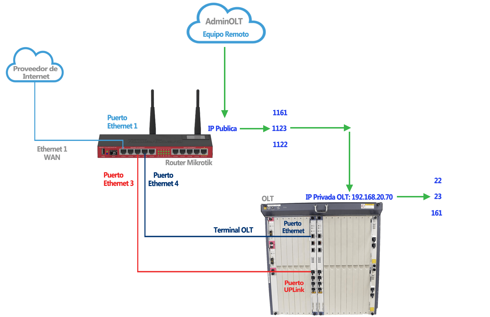 Debe colocar la IP privada que tiene la OLT, para este ejemplo el RB debe ser capaz de enviar ping al OLT.