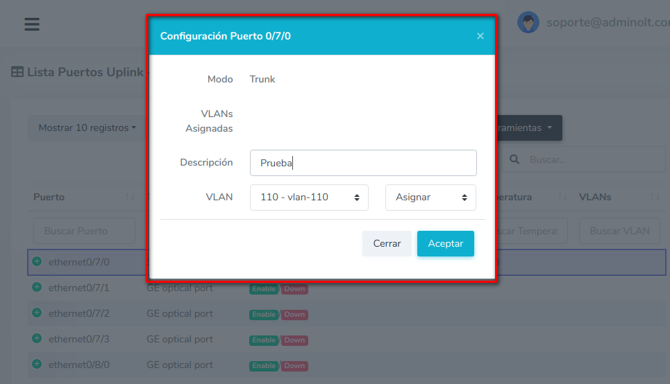 Habilitar puerto UPlink ZTE