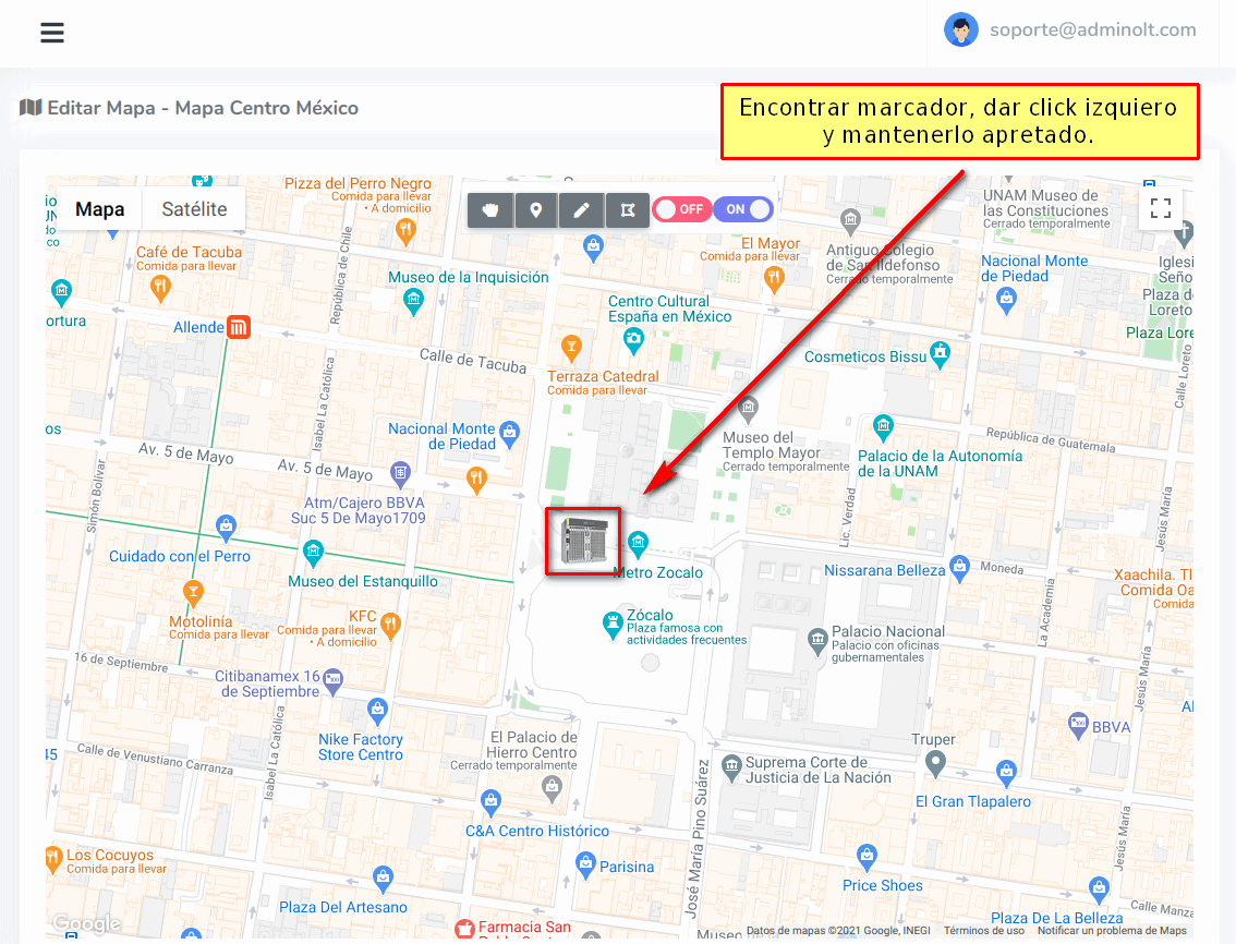 Si queremos cambiar de lugar un marcador creado lo podemos hacer, para esto debemos abrir el mapa en el que se encuentra el marcador y seguir los siguientes pasos.