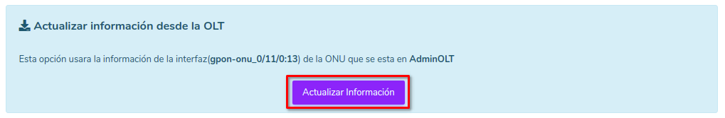 Si, decide actualizar información desde la OLT. De click en el siguente boton