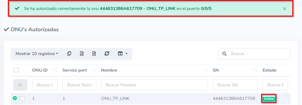 Se resume en la acción de autorizar utilizando el Numero de Serie (SN) de una ONU que no está conectada físicamente a la OLT. De esta forma, al momento de instalación, solo debe conectarse el equipo. Para realizar esta acción siga los siguientes pasos.