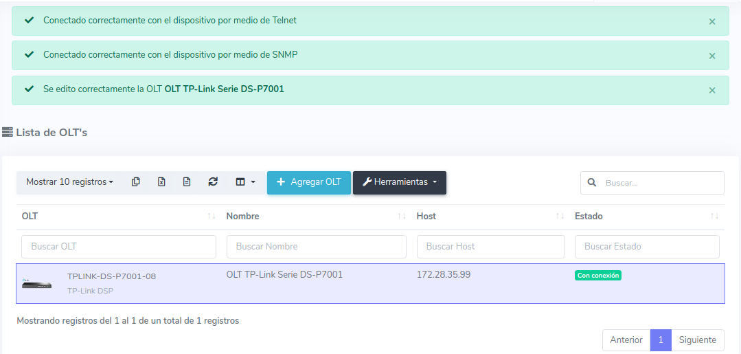 1 Para poder establecer la conexión de manera exitosa es necesario que generemos un script, para poder generarlo, nos dirigimos a nuestra OLT y seleccionamos la opción de editar.